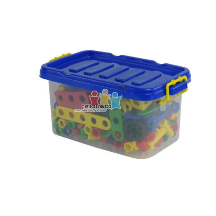 המשחק אום ובורג עשוי פלסטיק איכותי, מגיע בתוך מיכל אחסון שקוף